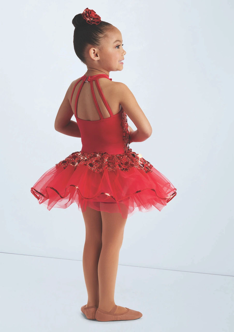 Three piece costume includes biketard, tutu and peplum skirt